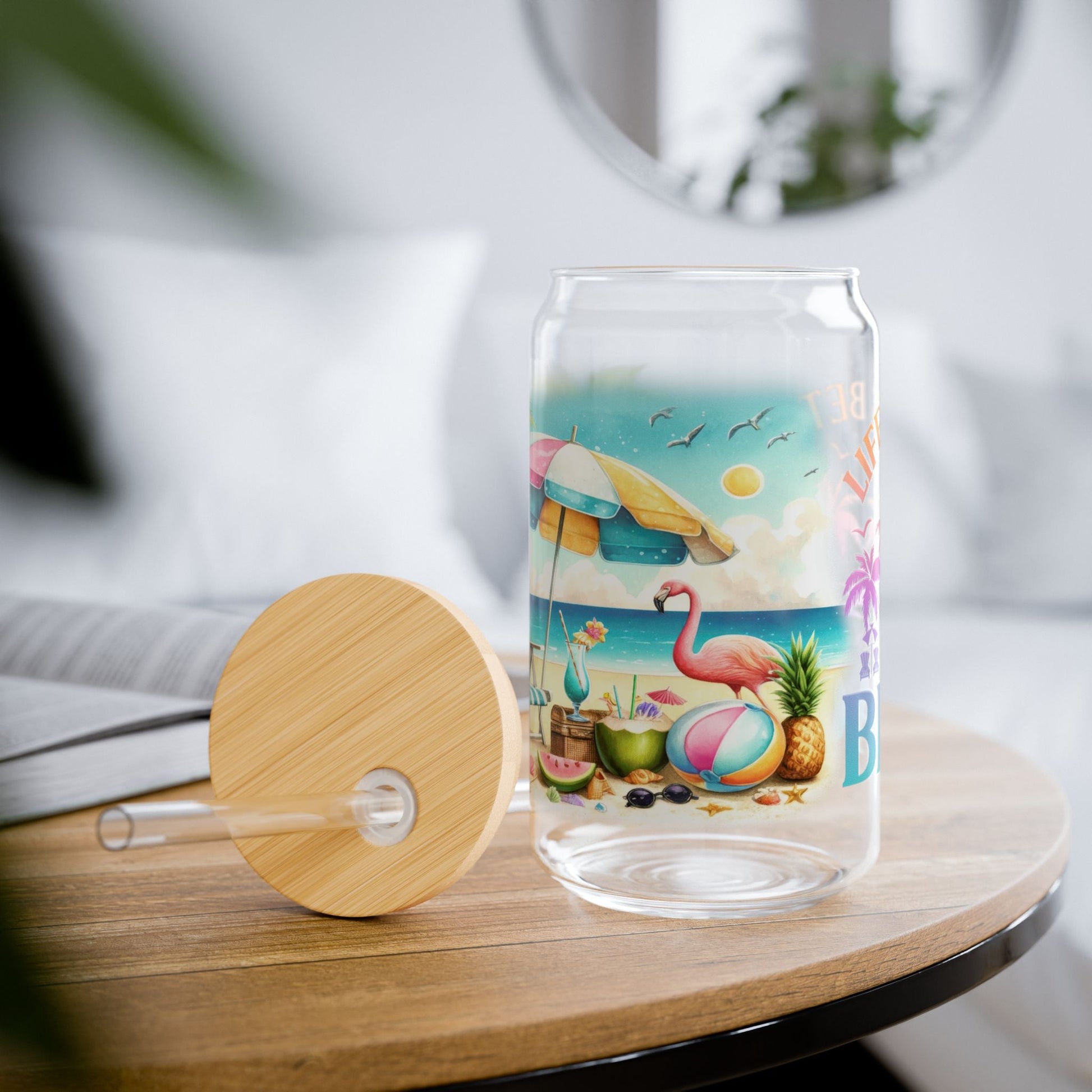 Life Is Better At the Beach 16oz Sipper Glass with Bamboo Lid & Straw