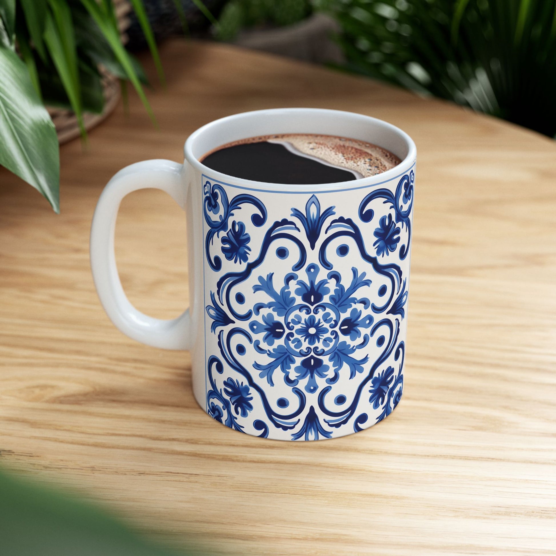 Blue Title Ceramic Mug, 11 oz mug, Portuguese Blue Title Inspired