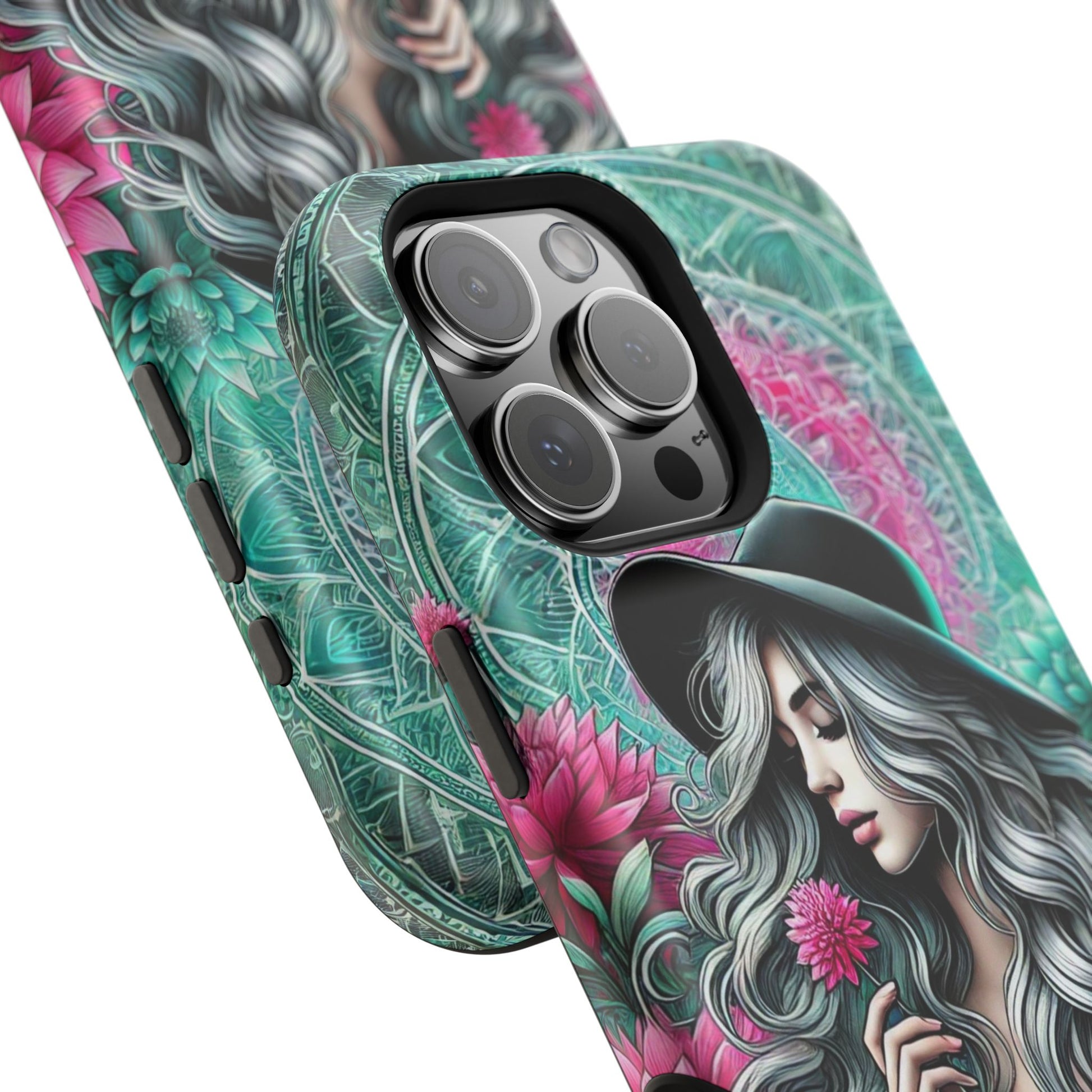 Embrace the boho chic vibe with this stunning iPhone magnetic case featuring a beautiful and intricate design of a stylish girl surrounded by vibrant flowers. The case captures a serene moment, blending artistry with fashion, making it a perfect accessory for those who love to express their unique style. The soft pastel colors and detailed floral patterns evoke a sense of calm and creativity, making your phone stand out in any setting. Designed for both aesthetics and functionality, this magnetic case provides strong protection for your iPhone while allowing for easy attachment to magnetic mounts. The slim and lightweight design ensures your phone remains easy to handle and carry, without compromising on style. Whether you're looking to treat yourself or searching for a thoughtful gift, this boho chic iPhone case is an ideal choice for those who appreciate art, beauty, and practicality.