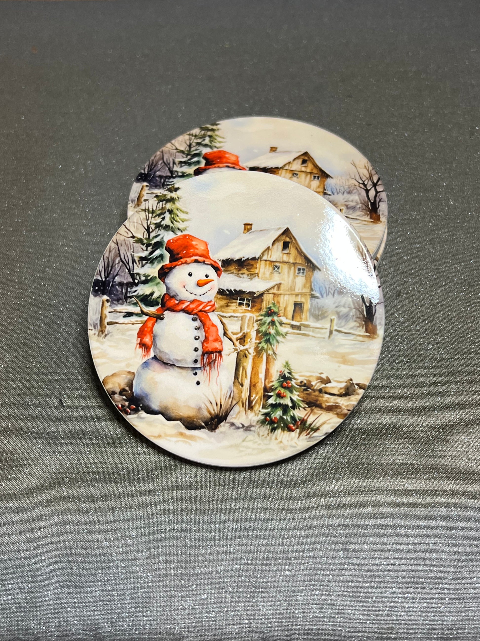 Christmas Snowman Coasters Set | 4” Ceramic Holiday Table Accents