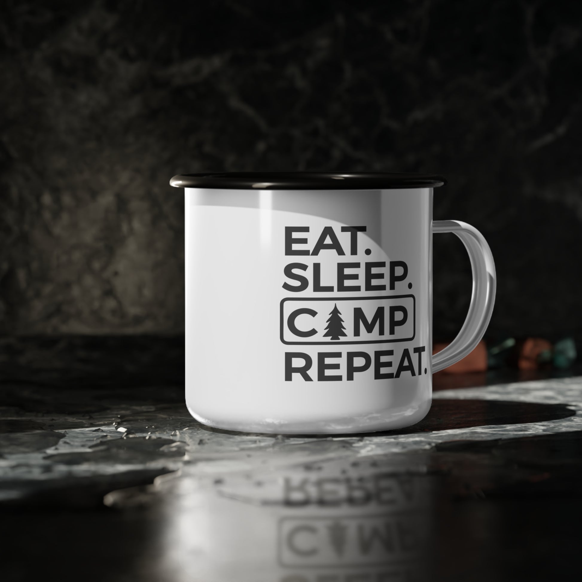 Eat Sleep Camp Repeat - 12oz Enamel Camping Mug