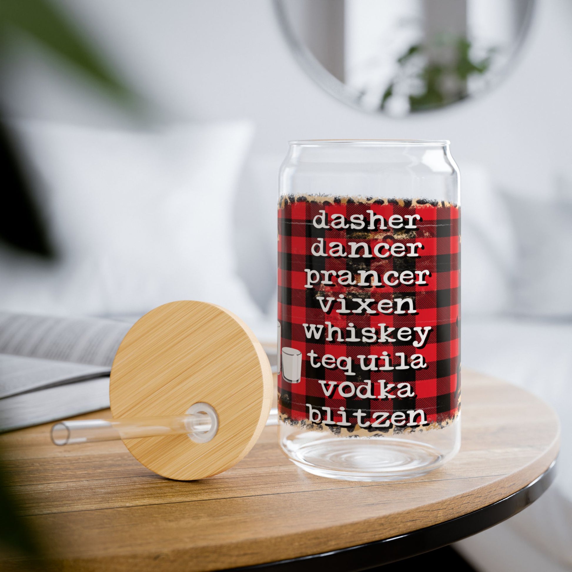 The perfect gift for those winter drinks that keep you warm on the inside! Fill it with water, Egg Nog, Iced Coffee, or whatever drink your heart desires!! Playing off of the Reindeer names by adding whiskey, tequila, and vodka which are all things you can also fill this 16oz Glass Cup with!