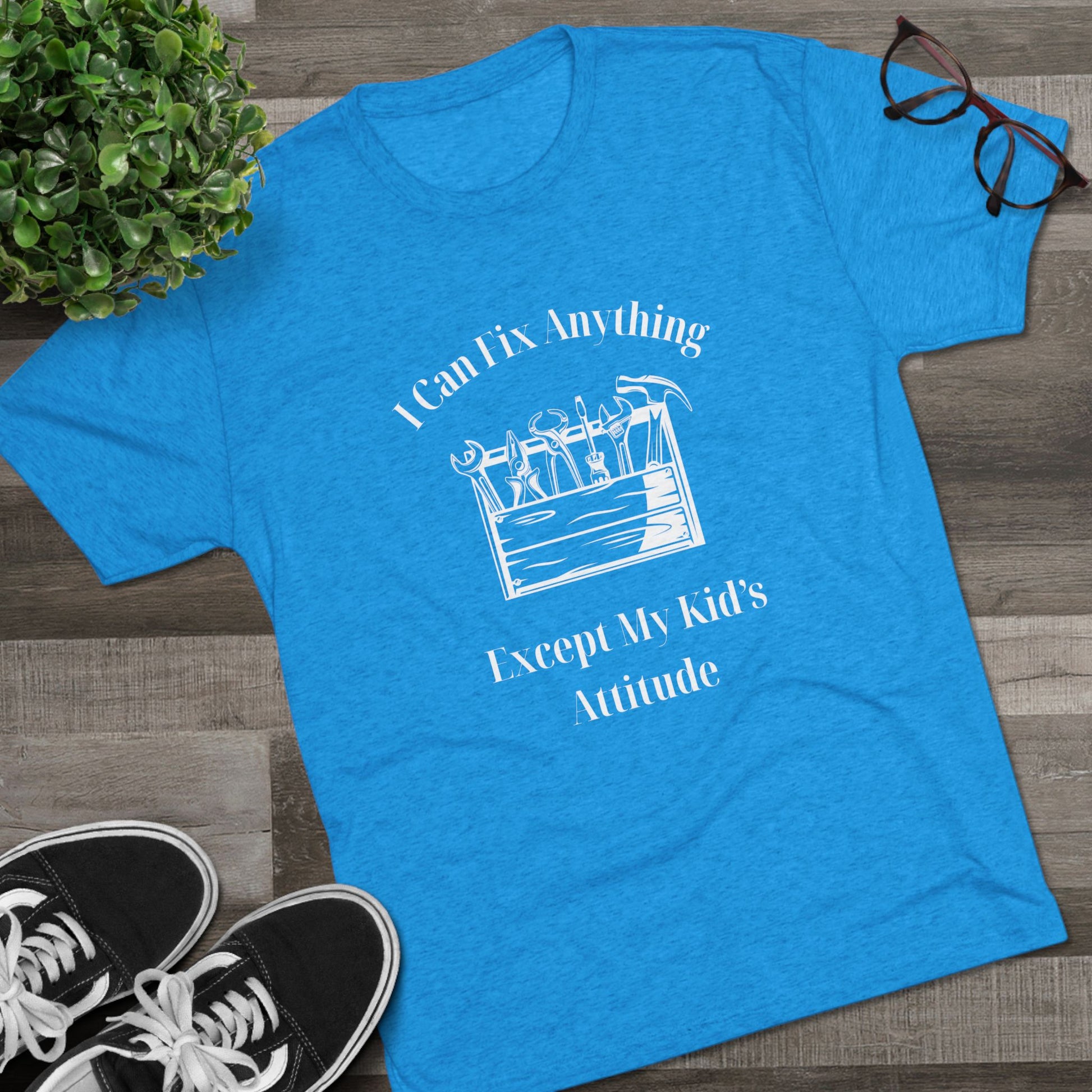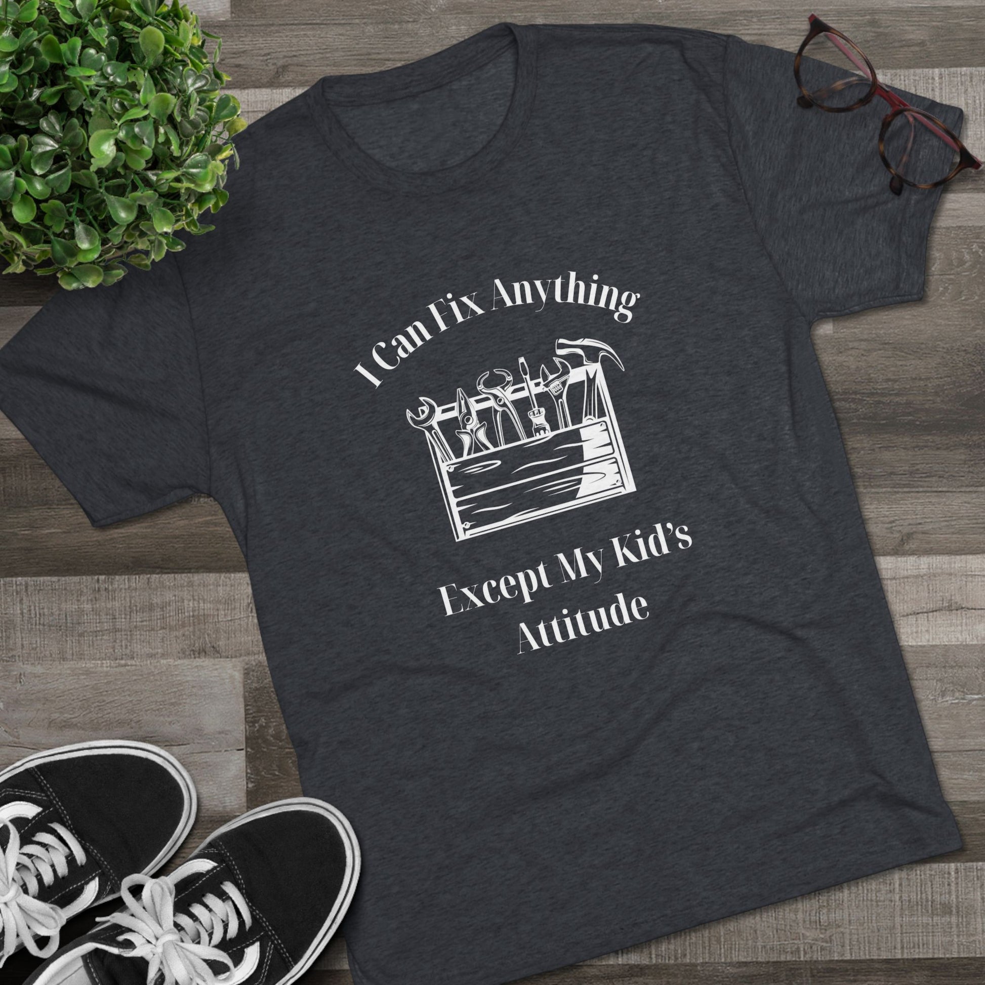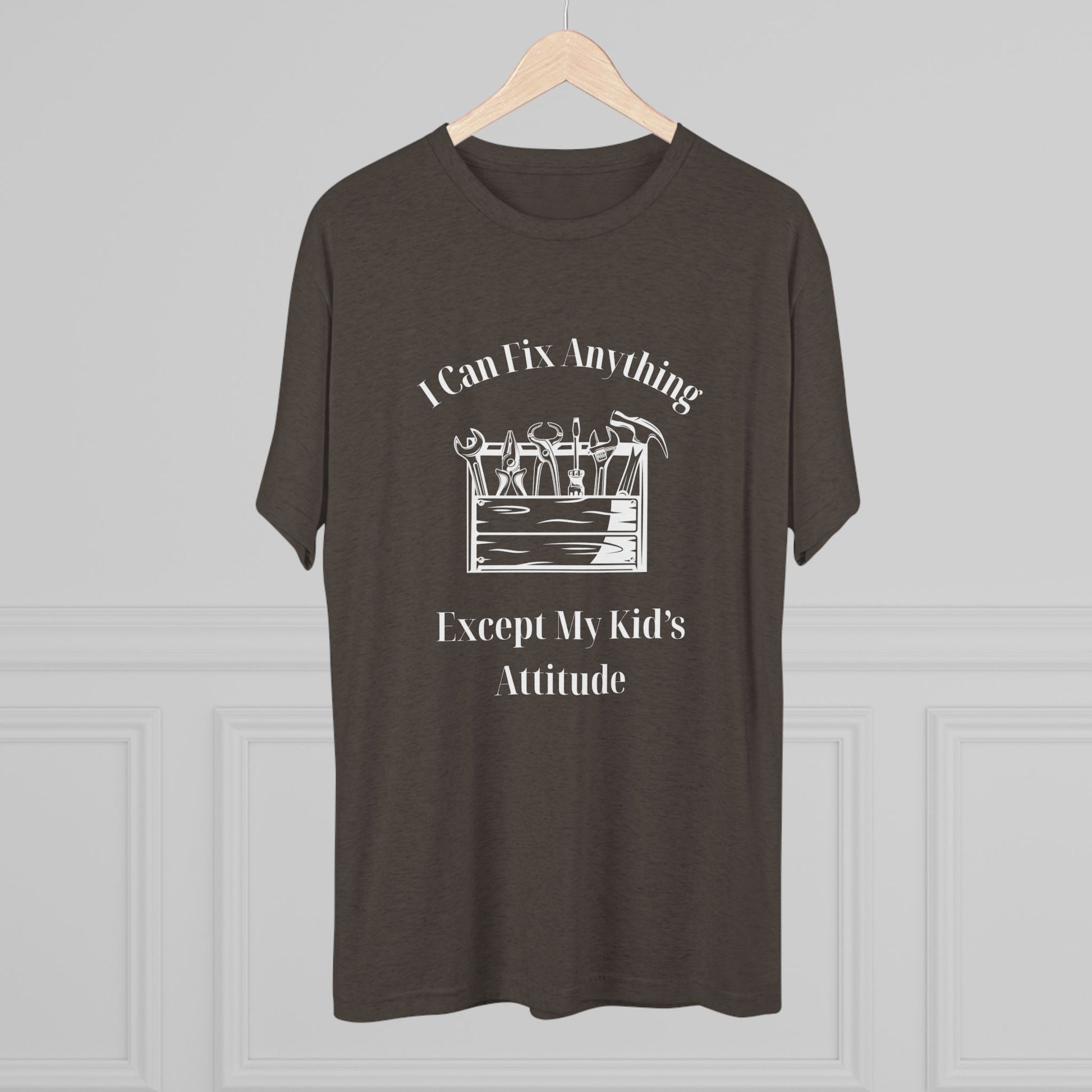 We all know a dad who is a wizard with a wrench but meets his match when it comes to a teenager's sass. Our "I Can Fix Anything Except My Kid's Attitude" tee is a tribute to every handyman, DIYer, and father who knows that some things just can't be repaired in the workshop.