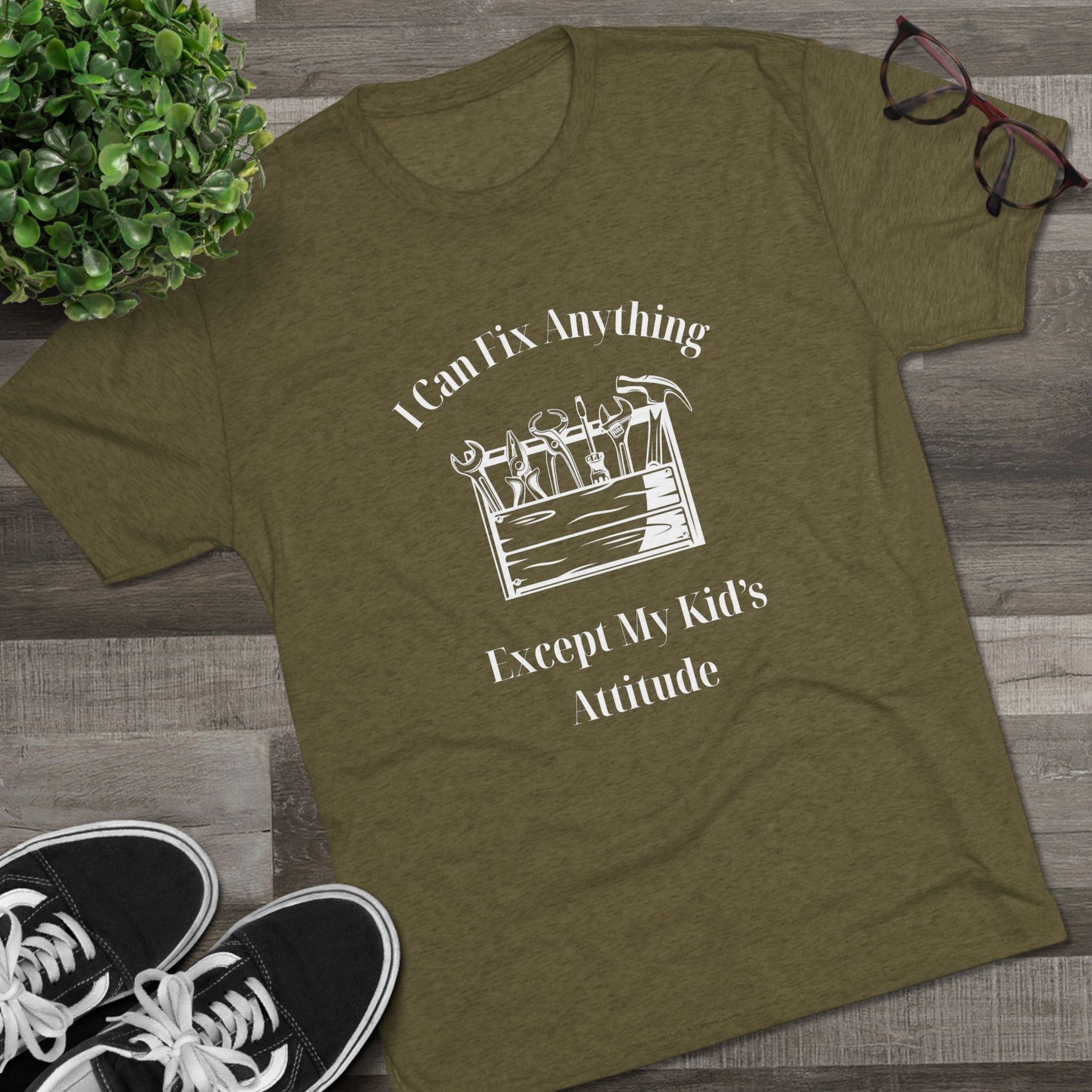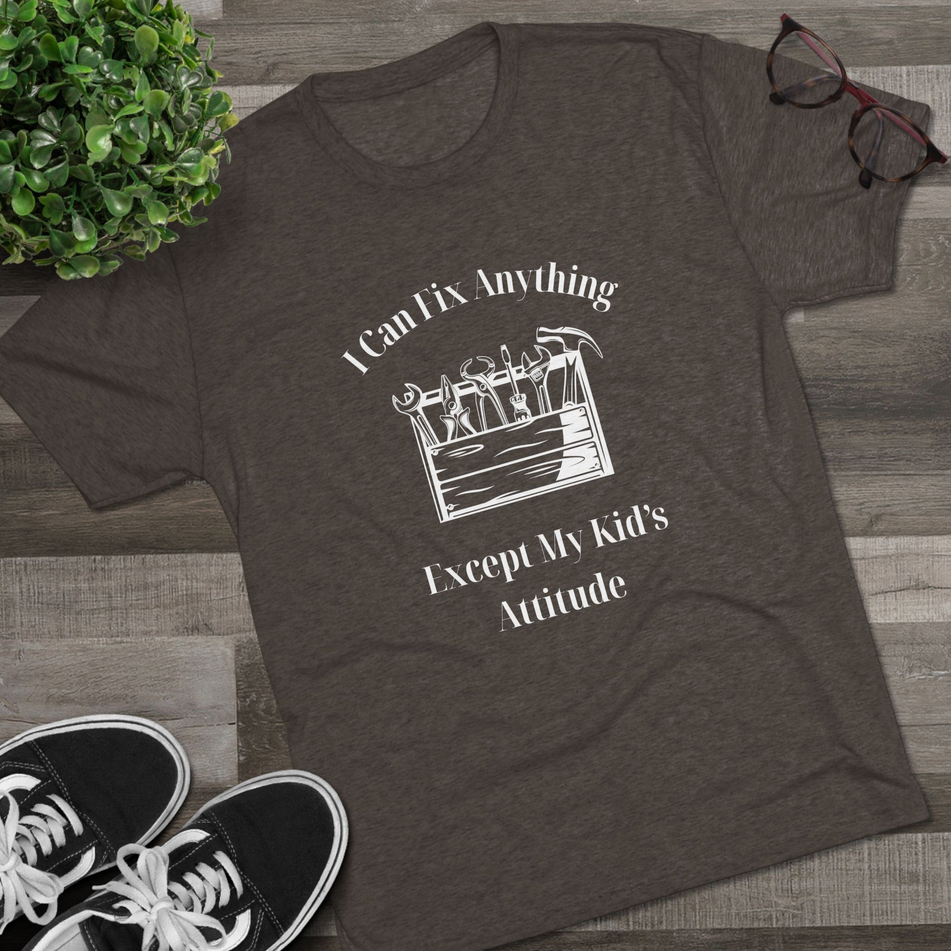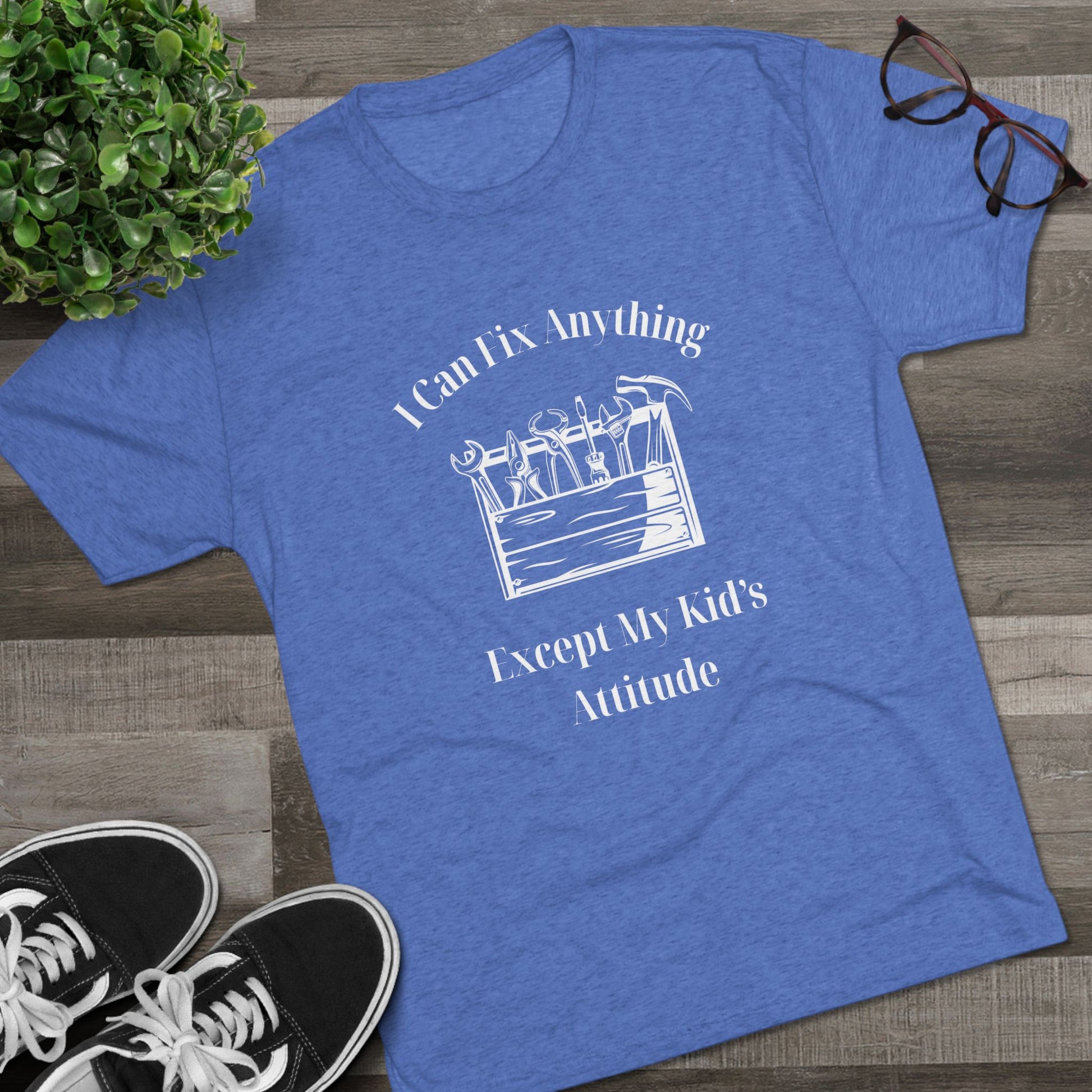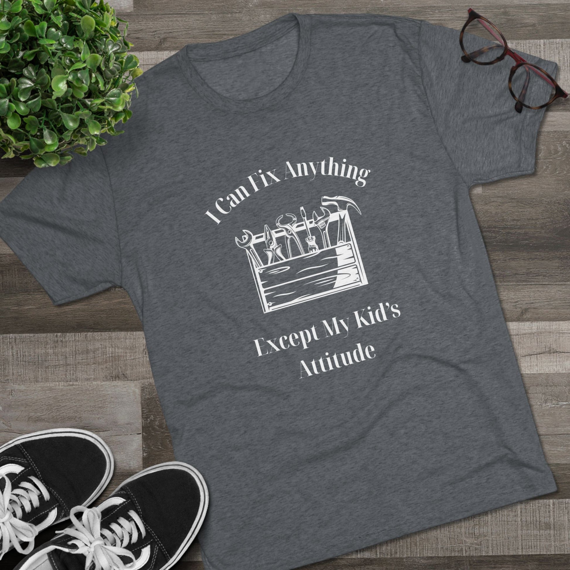 We all know a dad who is a wizard with a wrench but meets his match when it comes to a teenager's sass. Our "I Can Fix Anything Except My Kid's Attitude" tee is a tribute to every handyman, DIYer, and father who knows that some things just can't be repaired in the workshop.