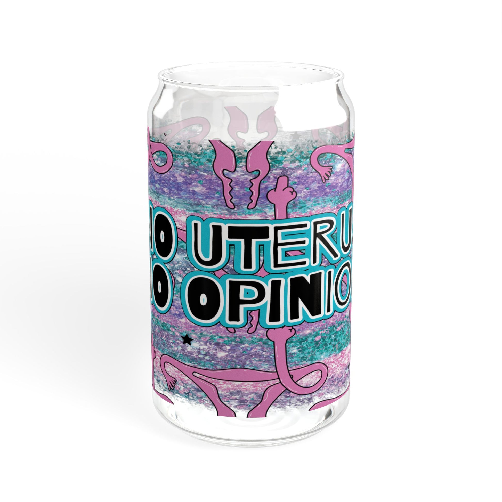 No Uterus No Opinion 16oz Glass Cup with Lid and Straw