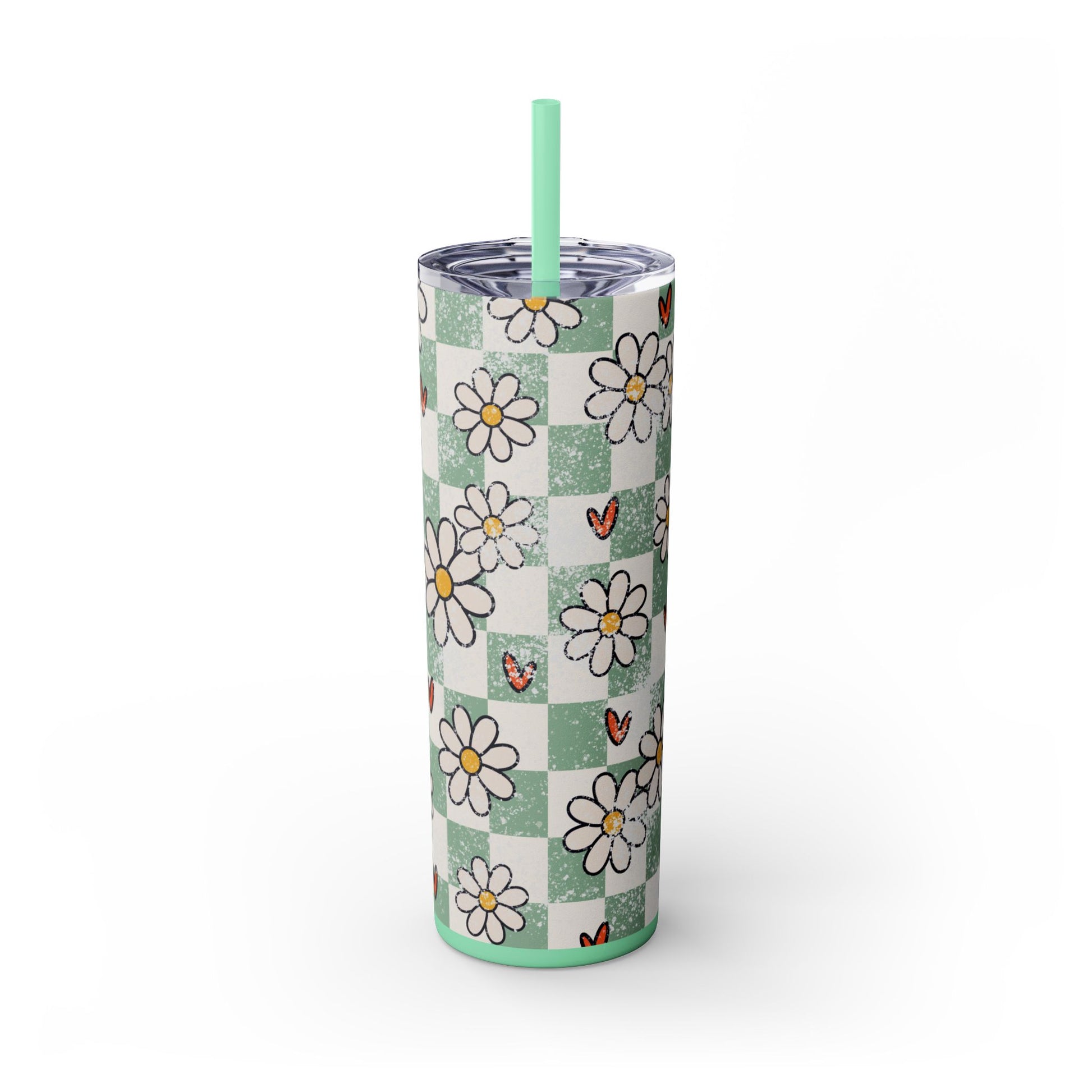 Skinny Tumbler, Daily Daisy Tumbler, Heart Tumbler, 20oz Skinny Tumbler, Skinny Tumbler with Lid and Straw, Floral Tumber