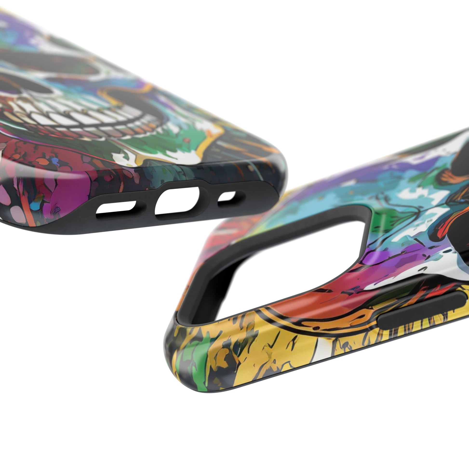 Custom designed Skull on Graffiti Magnetic Phone Case is designed for the new iPhone 17 series through the iPhone 13 series. Equipped with an outer polycarbonate shell and inner black TPU lining, this case delivers robust protection thanks to its durable, flexible, impact-resistant nature. Available in a matte or glossy finish, each case comes with an embedded magnet module that is compatible with MagSafe® accessories and a stunning print that fully wraps around your case's exterior.