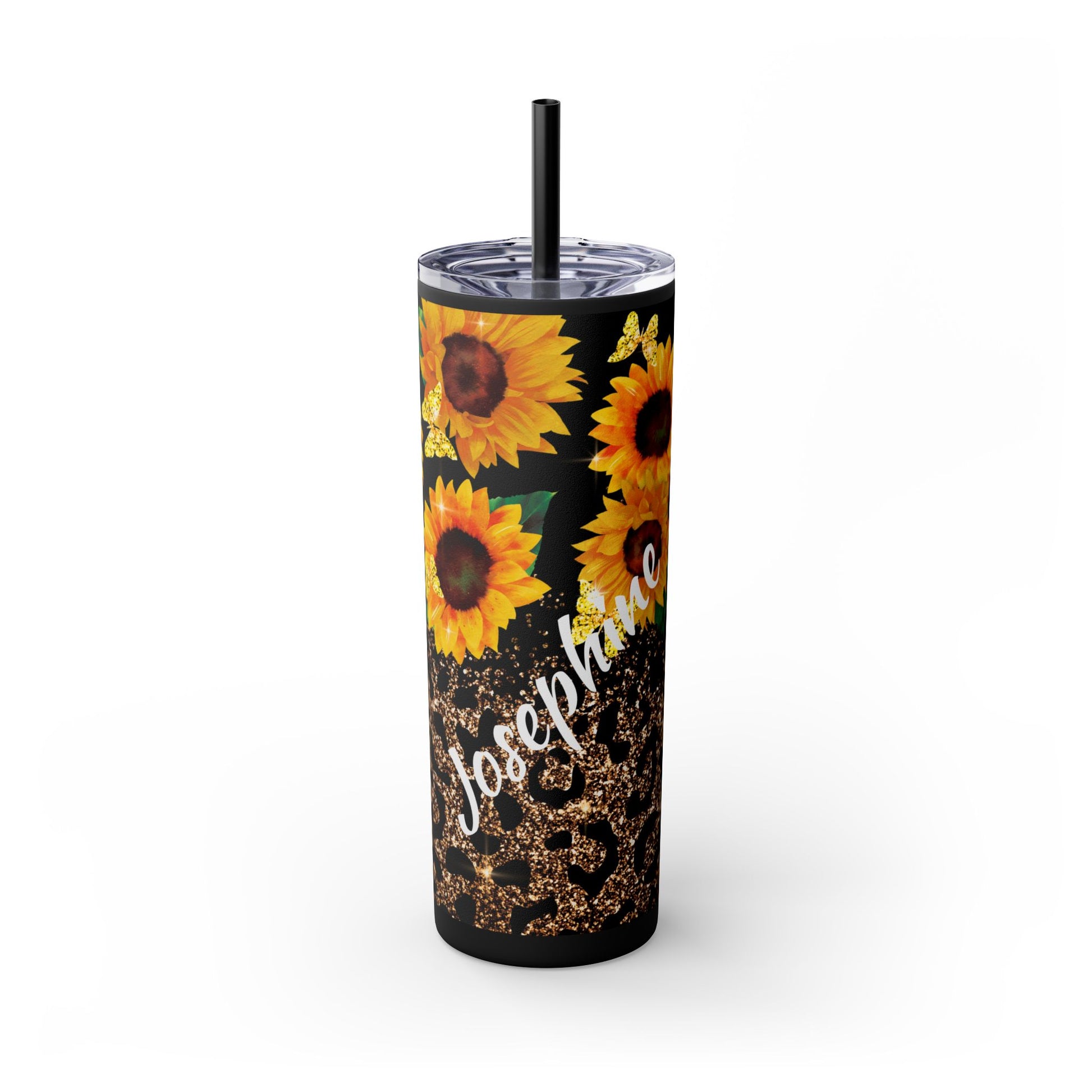Sunflowers Glitter 20oz Skinny Tumbler, Personalized Sunflower, Butterfly Personalized Tumbler, Sunflowers for Her, Butterflies for Her
