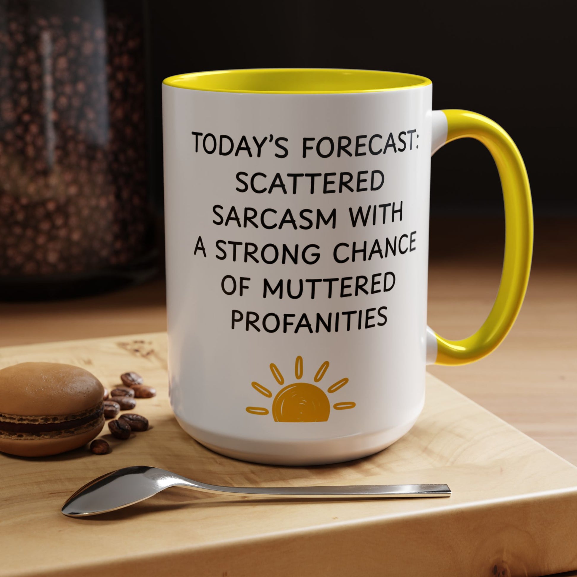Check the forecast before you walk into the office: scattered sarcasm with a strong chance of muttered profanities. Yep, sounds about right. This ceramic coffee mug perfectly captures that delicate balance between keeping it professional and barely keeping it together.
