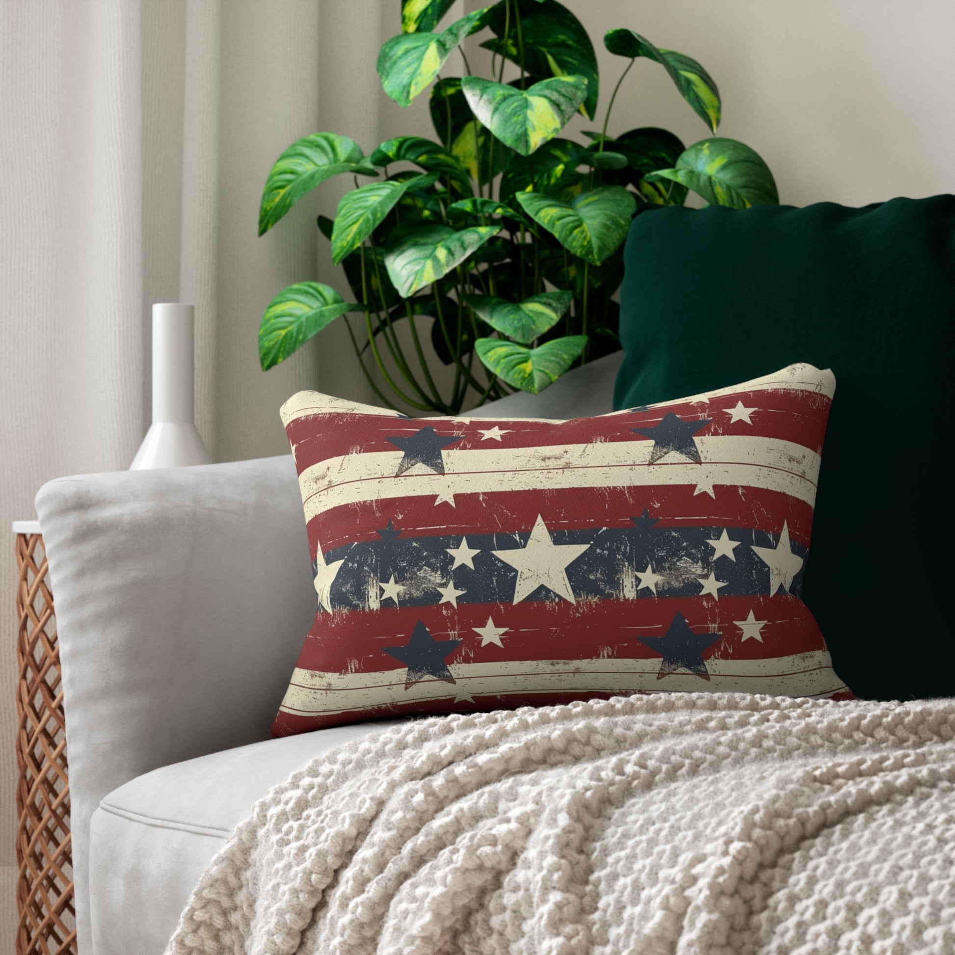 Show your patriotic spirit with this vintage-inspired stars and stripes lumbar pillow. A soft, stylish accent for celebrating America year-round.