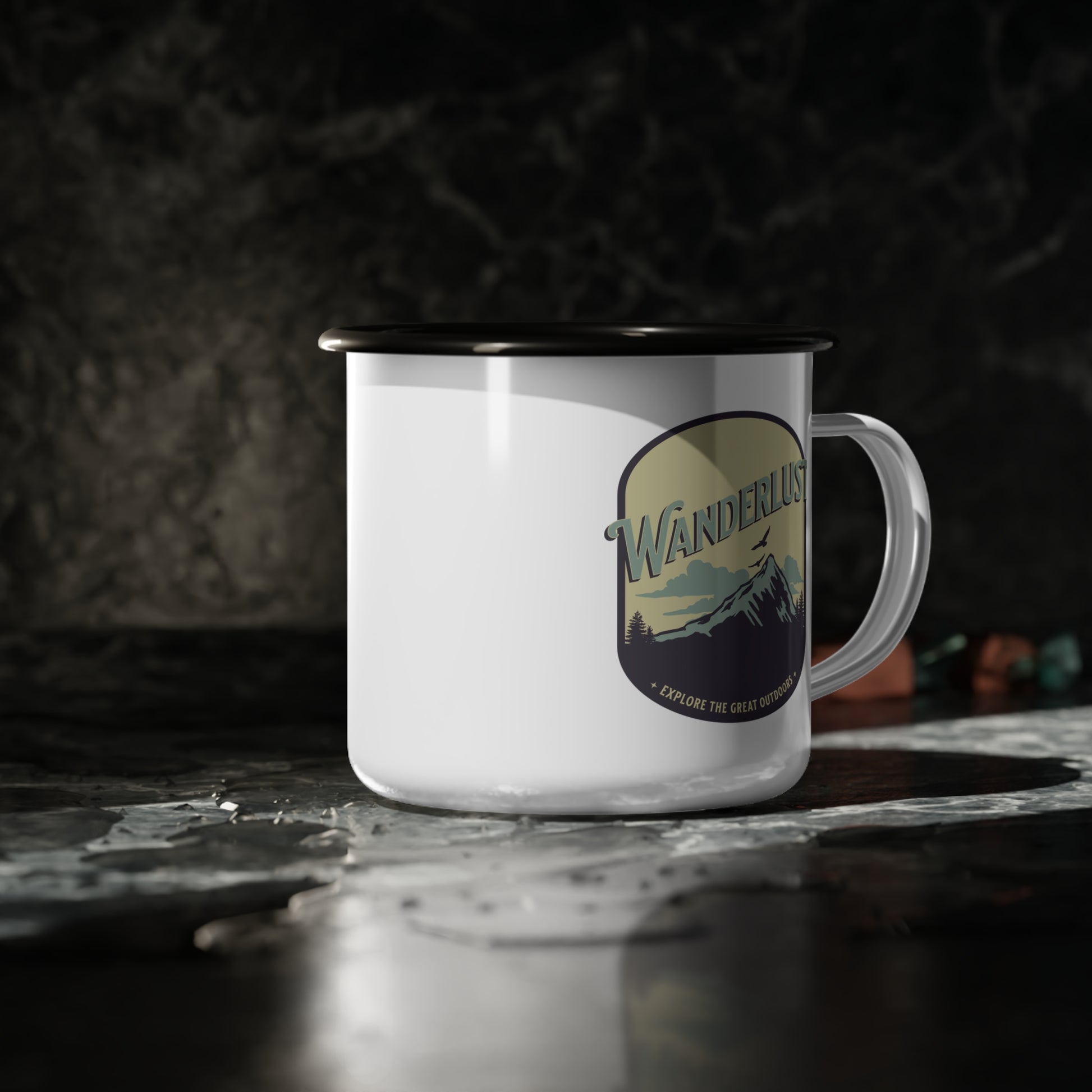 Born to be in the Great Outdoors, this custom enamel mug is a camper's best sidekick especially for the Wanderlust in all of us. With 12oz. for your favorite beverage, Wanderlust Explore the Great Outdoors is the perfect enamel camping mug for you or your favorite Outdoor Enthusiast. Featuring anti-alkali and acid-proof, making this a hard-wearing choice for any adventure. Plus, when at home, it can be tossed in the dishwasher for hassle-free cleaning.